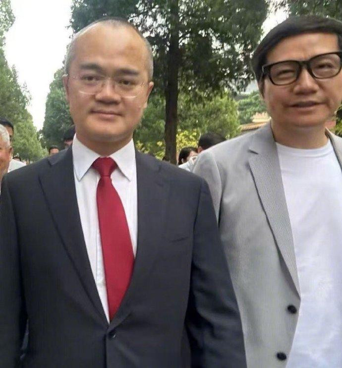 照片中,王兴与雷军并肩而行,两鬓斑白,额角的发际线后退,看起来有了岁月的痕迹。
